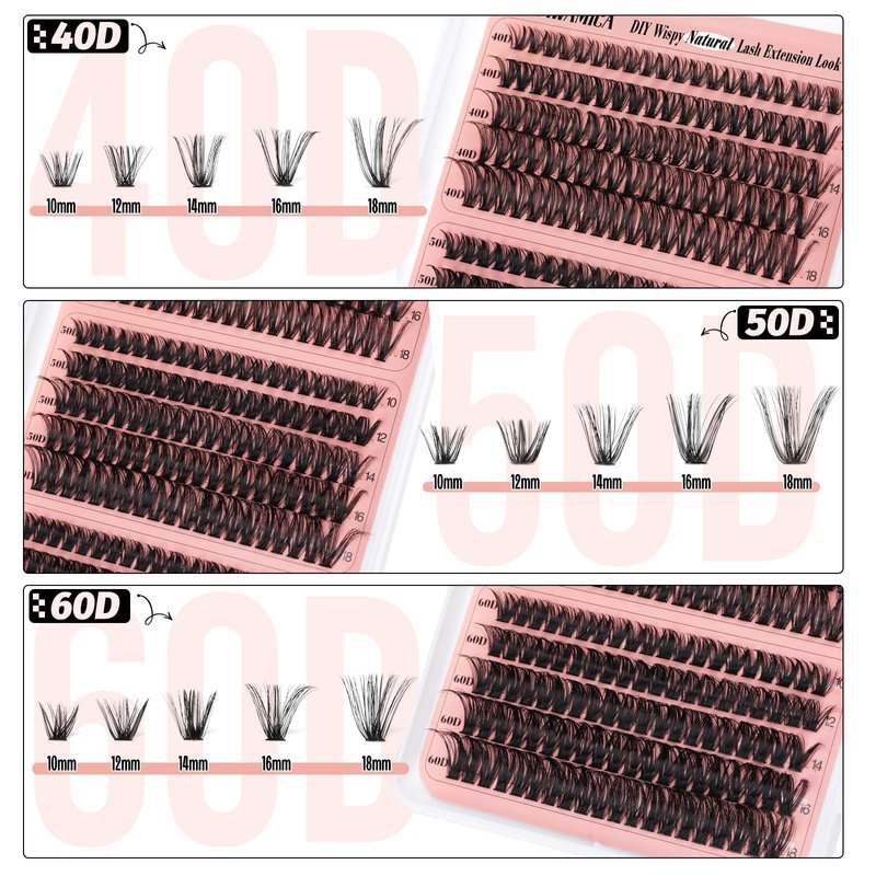 - 【Luxurious Fullness Look】With lengths ranging from 10mm to 18mm and a mix of 40d+50d+60d volume lash clusters, 300pcs fluffy cluster eyelash extensions add volume and length without added weight, offering a stunning and luxurious fullness with feather-light comfort, that seamlessly blends with your natural lashes.