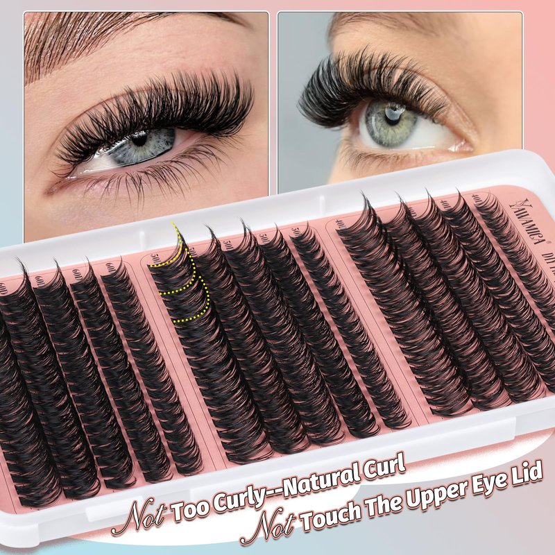 - 【Professional D Curl Design】D Curl curvature of wispy eyelash clusters are not too curly and don’t touch the upper eye lid, providing an uplifted, open-eyed appearance. The individual lashes extensions’ curve ensures a flawless integration, giving your eyes a bright and awake look all day long.