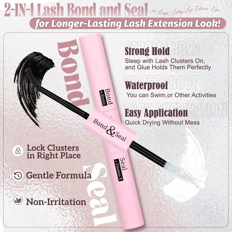- Longer-Lasting Lash Extensions Look: 2-in-1 strong hold lash bond and seal is included in diy lash extension kit, making your diy lash much easier without mess; And, lash cluster glue ensure your own eyelash extensions strong hold up to 72h+ even if putting through water