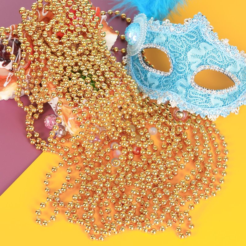 - Mardi Gras Beads: 15pcs of bead necklaces bulk, gold bead necklace, comes in classic Mardi Gras colors. The gold Mardi Gras beads necklace make perfect accessories for Mardi Gras costumes and Parades.