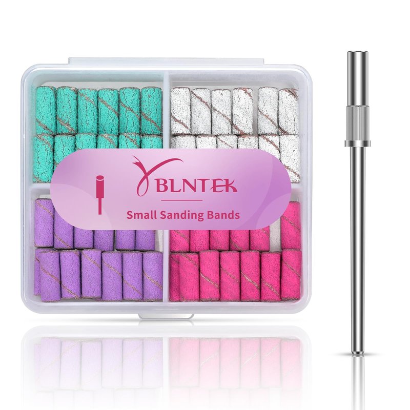 YBLNTEK 80Pcs Small Sanding Bands with 3.1MM Mandrel Bit for Nail Drill, 80 120 180 240 Grit Mini Nail Sanding Bands for Nails Acrylic Gel Removing and Shaping