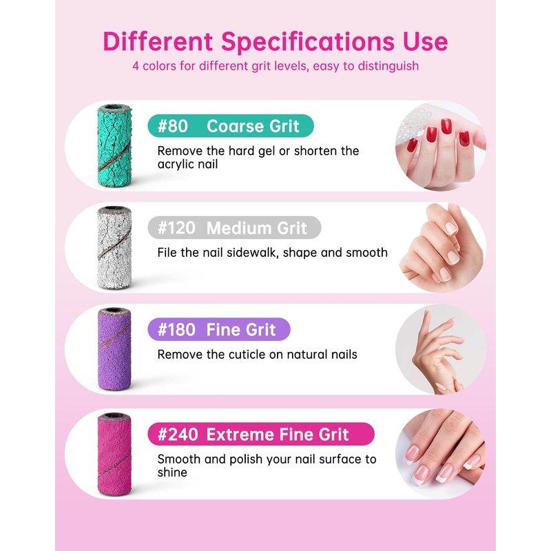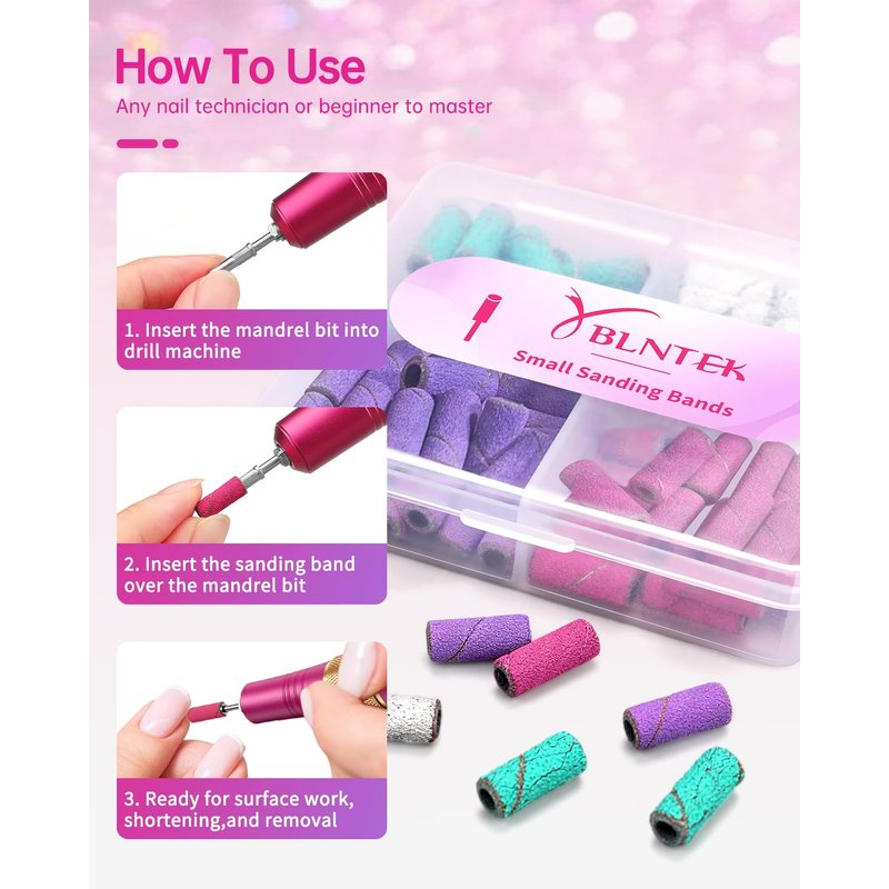 - 馃煝Wide Application: Small sanding bands are used for grinding, smoothing, shaping, and polishing for natural nails or artificial nails as well as cuticle removal. Suitable for nail salon, spa or personal manicure pedicure.