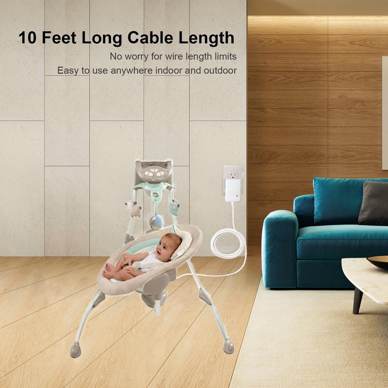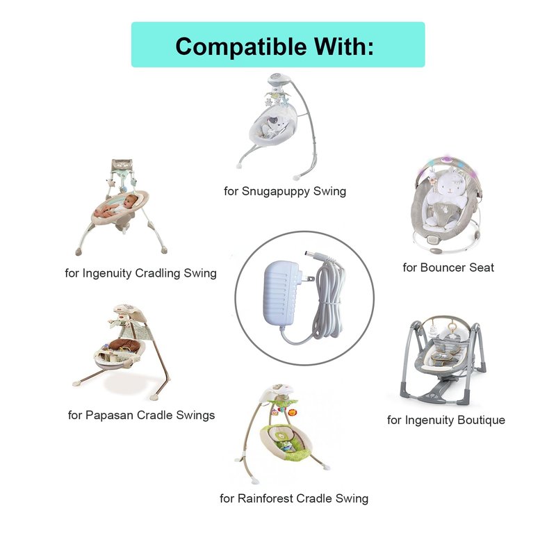 - 【Compatibility】This wall charger is compatible with Fisher-Price Snugapuppy Swing / Rainforest Cradle Swing / Butterfly Ocean Wonders / Papasan Cradle Swings, Ingenuity Inlighten Cradling Swing / Bouncer / Boutique