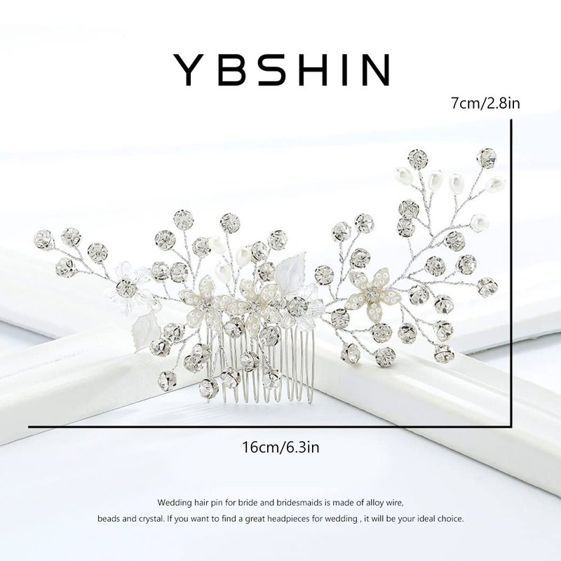 YBSHIN Silver Wedding Hair Accessories for Brides Flower Hair Comb Rhinestone Bridal Comb Headpieces Crystal hair bands Pearl headpiece for Women