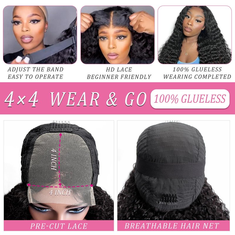 - 【Wear and Go Glueless Wig Cap】:pre cut lace glueless wig wear and go, new update 3D dome wig cap,4 Combs, removable adjustable elastic band to fix the human hair wig well,wig cap is breathable ,comfortabe and soft,medium cap size (21-22.5 inches),big head friendly.