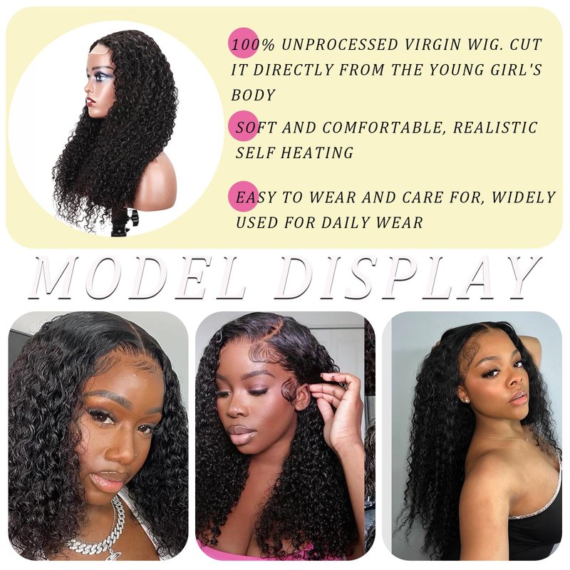 - 【Human Hair Wigs for Black Women Quality】: 180% Density Deep Curly Wigs Full and Thick, Pre Plucked Hairline With Baby Hair. Middle Part Hairline in Default Can Be Free Part. 16-26 Inch Available