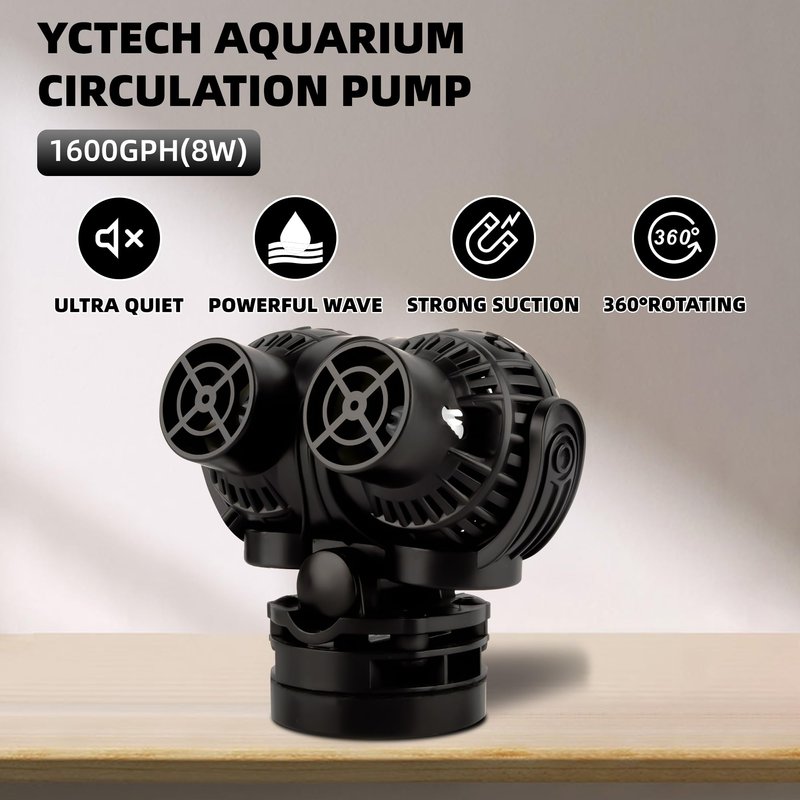 YCTECH Aquarium Wave Maker Pump: 8W 1600GPH 360°Adjustable Power Head Fish Tank Circulation Pump with Magnet Suction Base for Freshwater | Saltwater