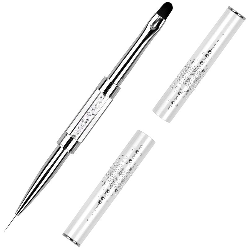 Ycyan 1Pcs Dual-ended Nail Design Brush Rhinestone Handle UV Gel Nail Brush Professional Nail Art Tools