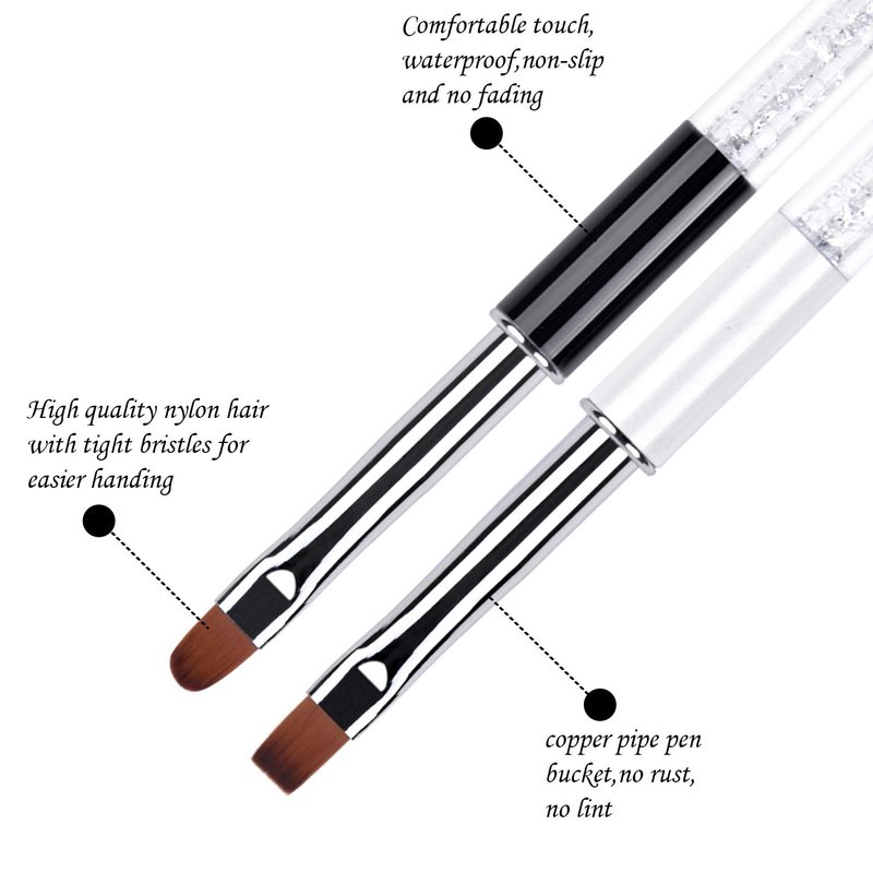 Ycyan 2Pcs Oval & Flat UV Gel Nail Brush Set Rhinestone Handle Professional Nail Art Design Brushes