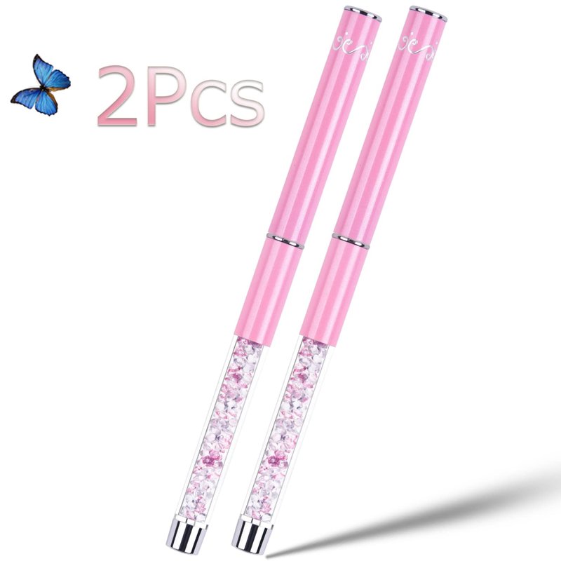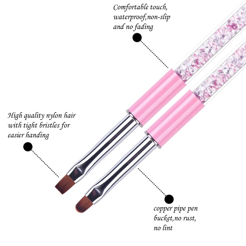 Ycyan 2Pcs Oval & Flat UV Gel Nail Brush Set Rhinestone Handle Professional Nail Art Design Brushes Pink Size 8
