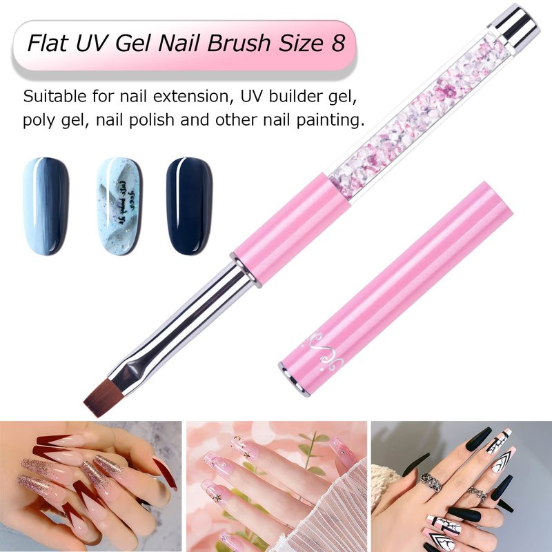 - ✿【Package include】: 2 pieces nail art brush set, 2 different size: Oval & Flat UV Gel Nail Brush size 8. 100% brand new and high quality.
