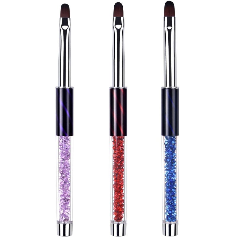 Ycyan 3Pcs Oval Gel Nail Brush Set Rhinestone Handle Professional Nail Art Tools for Polygel UV Builder Gel Nails Extension Size 6/8/10