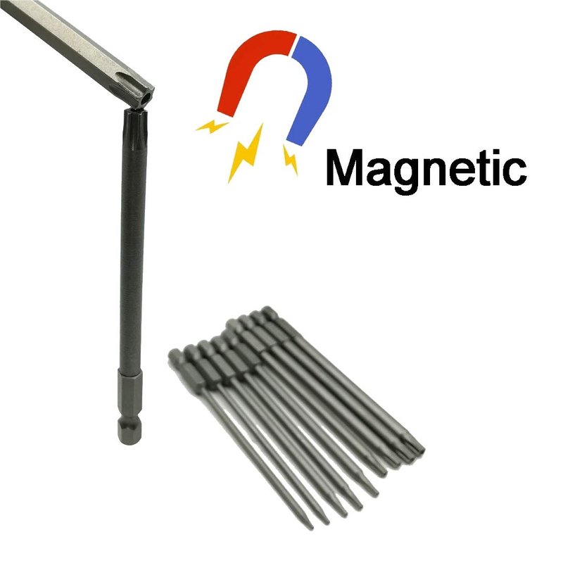 ★11 pcs long Torx bit set. Magnetizable torx security head(New Bits with weak Magnetic). After Magnetized with a magnet, can suck the screws easily when used it.