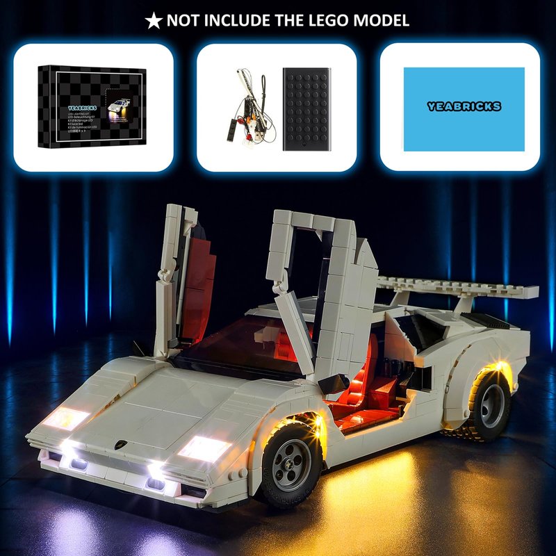 YEABRICKS LED Light for 10337 Icons Lamborghini Countach 5000 Quattrovalvole Building Blocks Model (Building Set NOT Included)