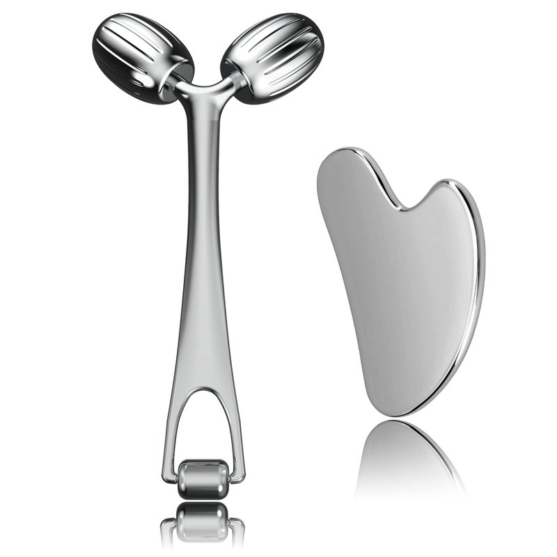 Yeamon Face Massager, Metal Face Roller Gua Sha Massage Tool for Face Neck Eye Body Skin Care, Facial Roller for Women