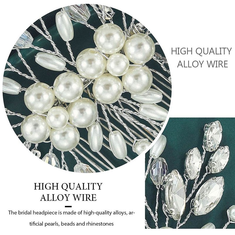 - Silver leaves hair comb in unique design and excellent workmanship, made of pearls, crystals, and alloy.