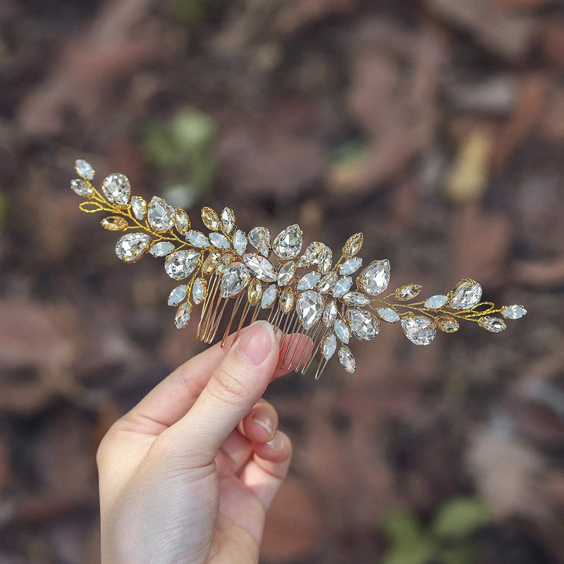 - Champagne crystal hair side comb for brides and bridesmaids, will add more charm for your outfit and make you elegant.