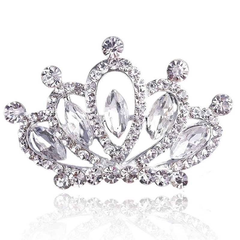 Yean Mini Princess Crown Comb Silver Crystal Tiara Hair Comb Rhinestone Hair Accessories Decorations for Women and Girls (Silver)