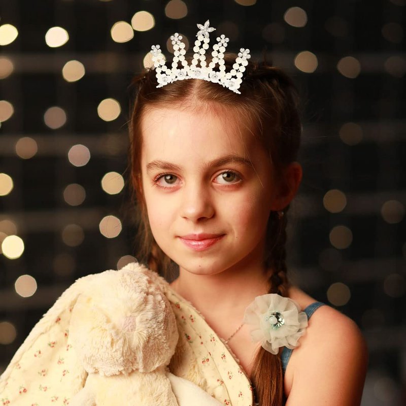 - Girls tiara crown are made of pearl,crystal and flower. It is elegant and beautiful.