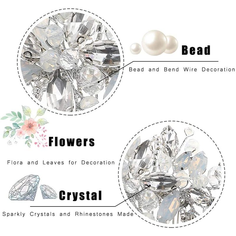 - Material: glass beads, opal rhinestones, crystal, wire and hair comb. Size and weight please refer the 7th picture.