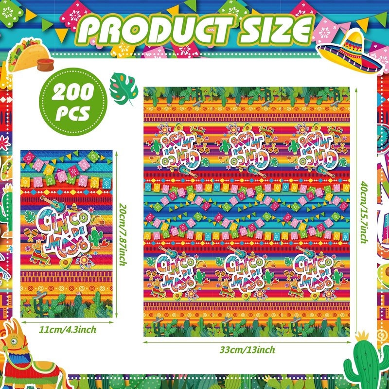- 200 Pack Cinco De Mayo Napkins: these Cinco De Mayo disposable guest towels are enough for your daily use and entertaining needs, can serve your party guests in parties, catering, buffets, light meals, events or daily meals