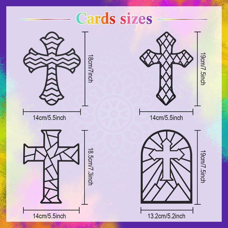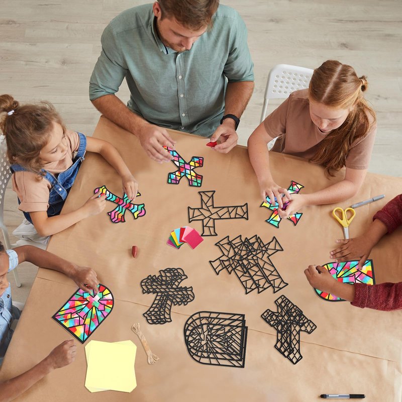 Yeaqee 24 Pack DIY Suncatcher Paper Crafts Stained Glass Effect Paper Suncatchers, 700 Tissue Papers, Window Art Arts and Crafts for Party Favors Toys(Cross)