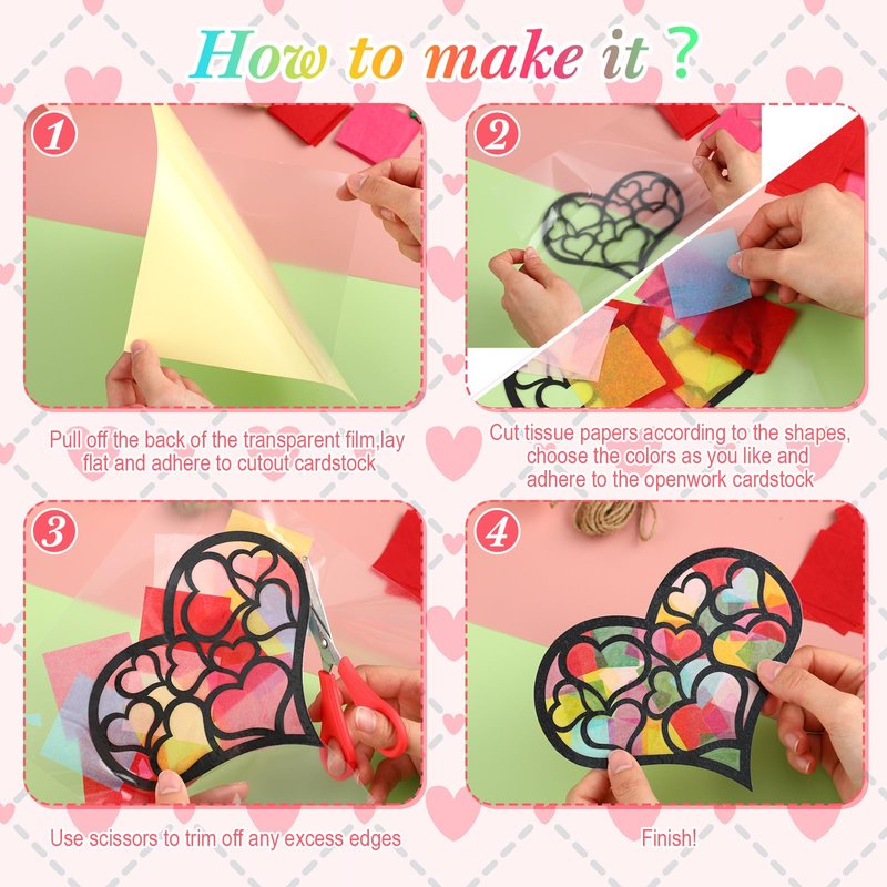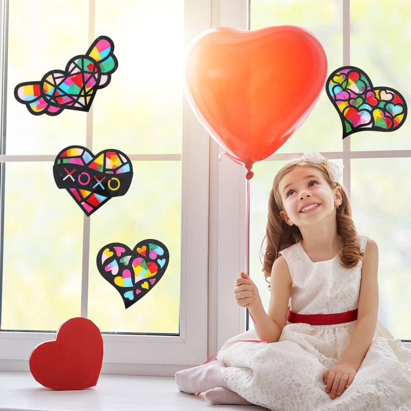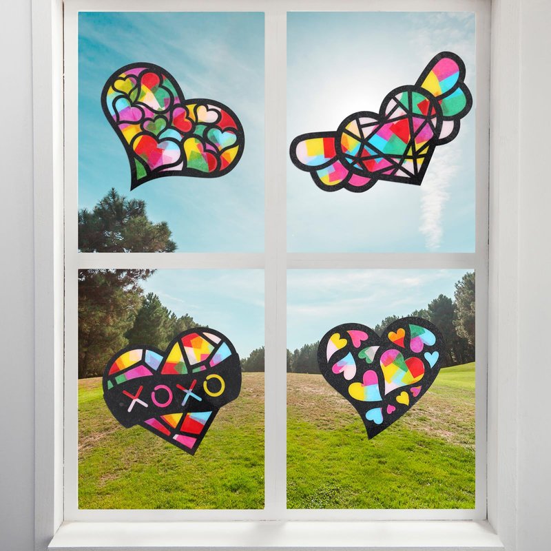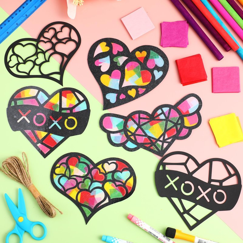 Yeaqee 24 Pack DIY Suncatcher Paper Crafts Stained Glass Effect Paper Suncatchers, 700 Tissue Papers, Window Art Arts and Crafts for Party Favors Toys(Heart)
