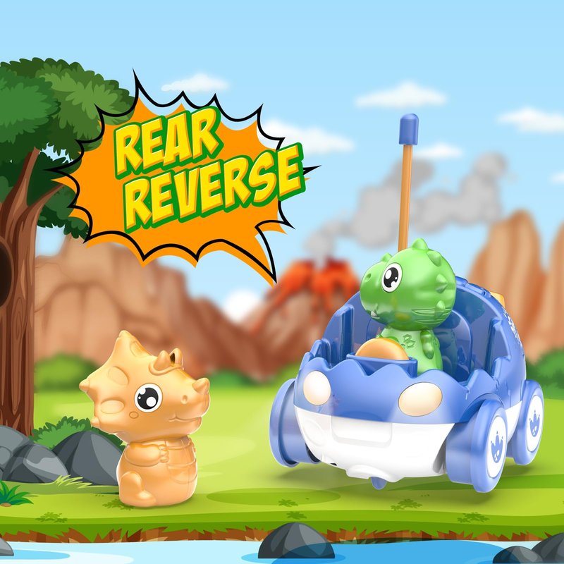 - The first RC car for your child - Suitable for kids over 18 months old to play, remote control car Dinosaur eggs model design, single frequency control specially designed, can be operated to run together without interfering with each other. Large buttons designed for 2 year old boy birthday gift, forward and left backward, easy to operate, the tire friction design of the remote control car is specially designed to drive smoothly on the carpet of the living room bedroom