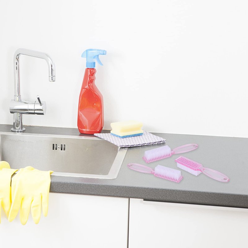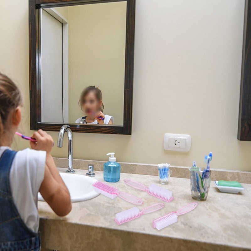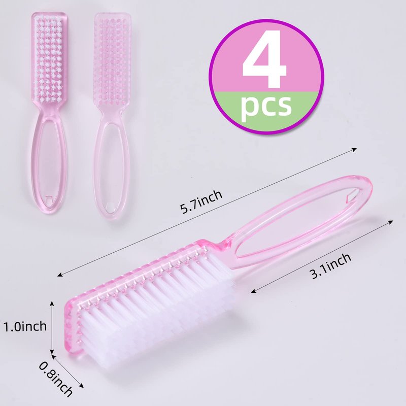 Yebeauty Nail Brush Fingernail Cleaner, 4 Pack Hand Scrub Cleaning Brush Plastic Hand Finger Toes Scrubbing Brush, Pedicure Nail Scrubber,Clear Pink