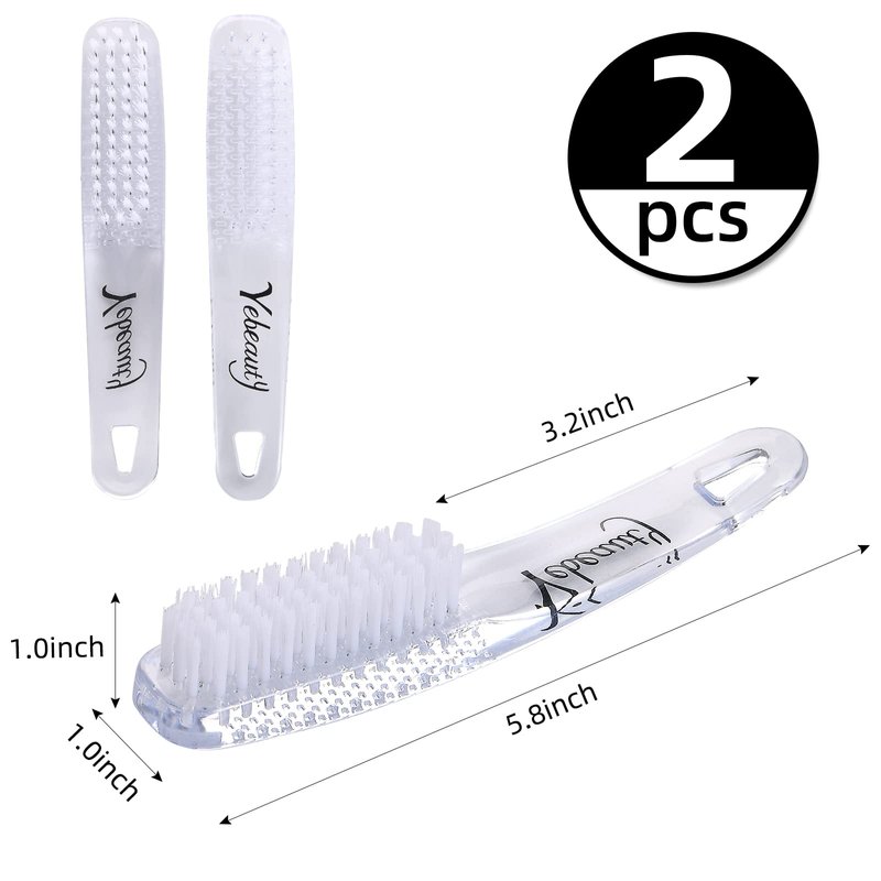 Yebeauty Nail Brush for Cleaning fingernails Clear, 2 Pack Fingernail Brush Hand Scrub Cleaning Nail Brushes with Case Plastic Hand Finger Toes Scrubbing Brush, Pedicure Nail Scrubber