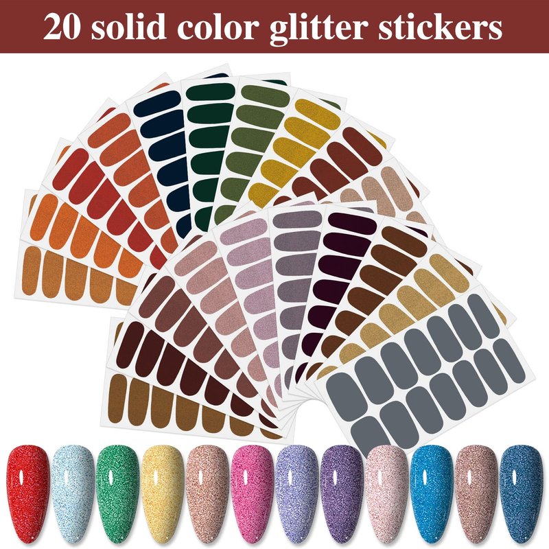 - [What you get]: Package content 20 color glitter solid full nail wraps in different sizes, each sheet contains 14 pcs, totally 280 pcs, together with 1 piece moon shape nail file, sufficient to meet your DIY nail decoration needs