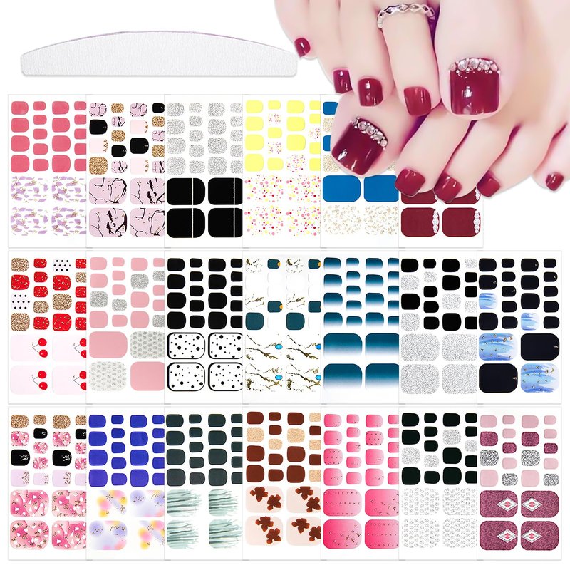 - [What you get]: Package content 20 different designs toenails full nail wraps in 11 different sizes, each sheet contains 22 pcs, totally 440 pcs, together with 1 piece moon shape nail file, sufficient to meet your DIY nail decoration needs
