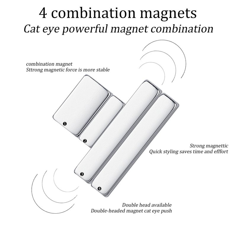 - 【Package Content】it is 5 pcs magnet set, include 1 big dual end cylindrical nail magnet and 4 pcs mini rectangle cat eye magnet for nails with different size, easy to hold, can be assembled into different shapes to help you create an imaginative cat's eye effect