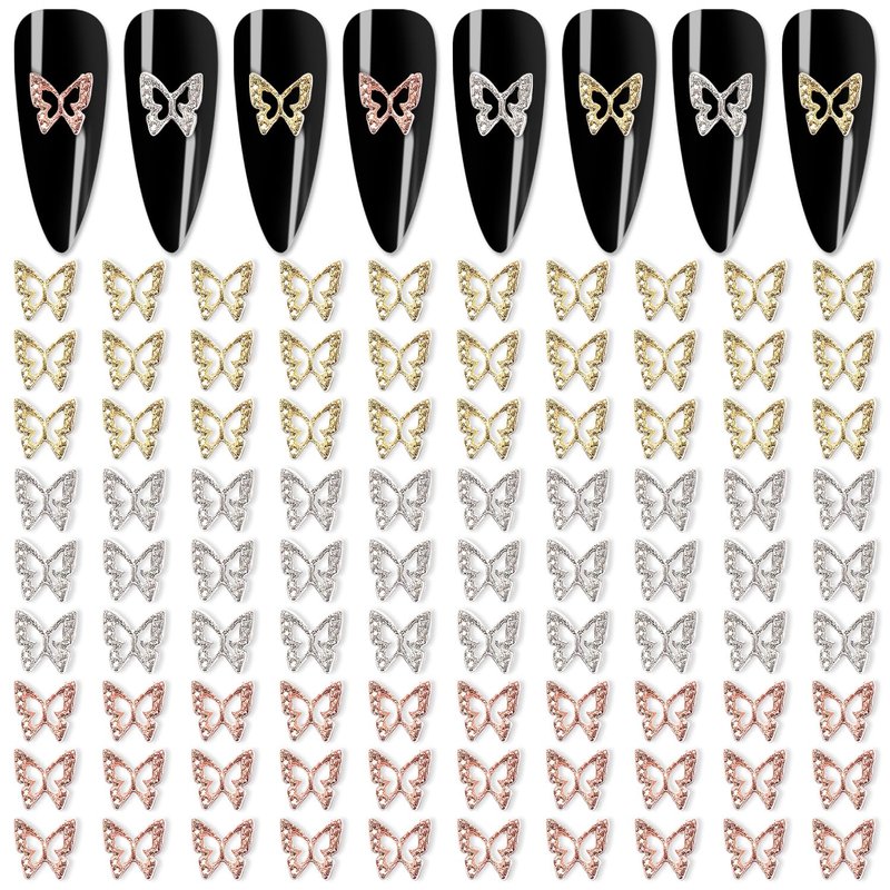 - 30 pieces gold ,30 pieces silver, and 30 pieces rose gold butterfly nail charms