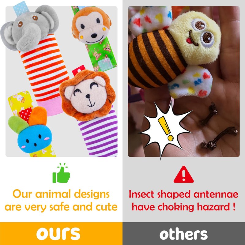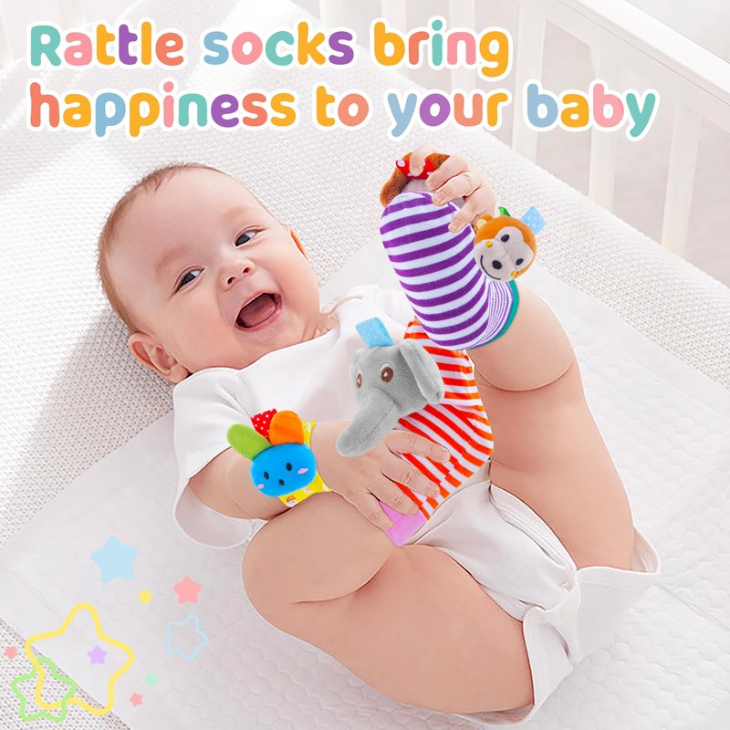 - 【Exercise Vision All the Time】Each animal-shaped wristband or foot-finding socks has a colorful color, bringing visual stimulation to the baby