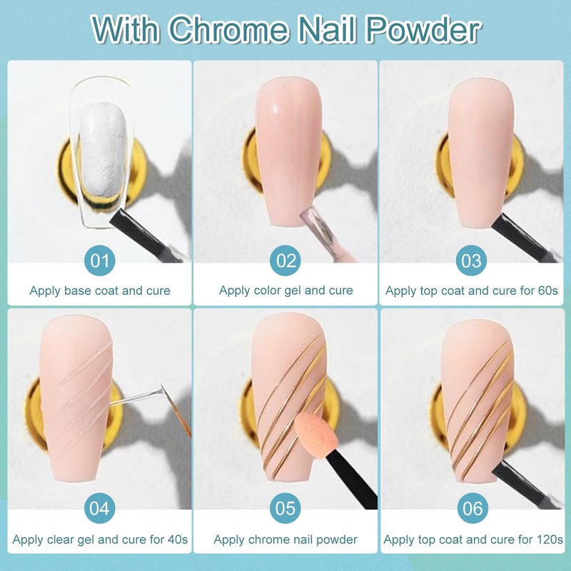 - Enhance with Chrome Nail Powder: Elevate your nail art to new heights by incorporating chrome nail powder into your designs. This fusion results in mesmerizing and ultra-modern nail looks with a holographic effect.