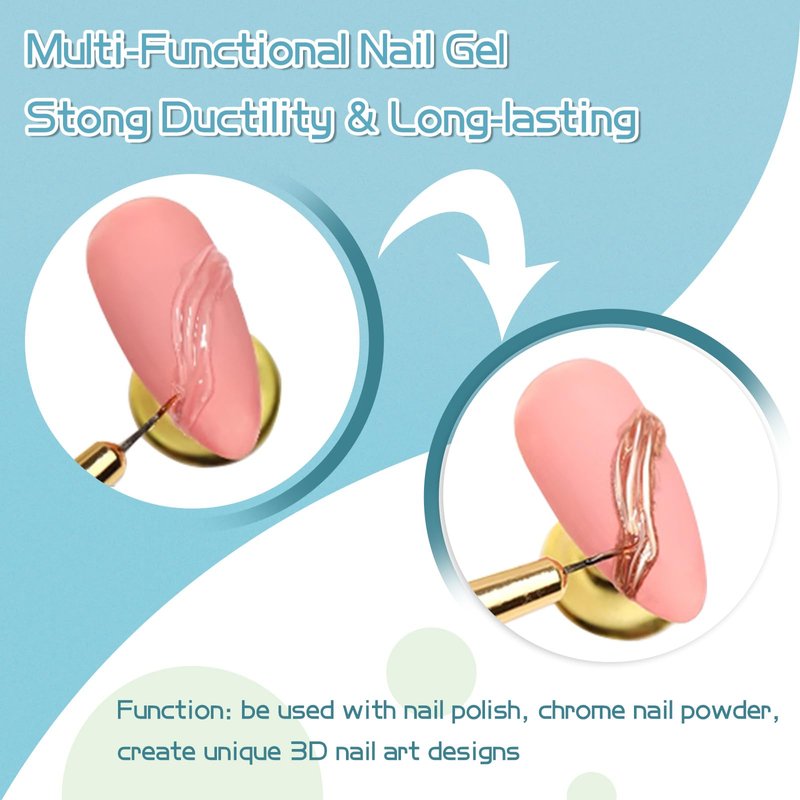- Wide Use for Nail Drawing: Achieve precision and ease in your nail art with our 3D clear nail gel. Its unique, non-sticky formula offers a smooth, frustration-free application, enabling you to draw extended lines without smudges for nail art every time.