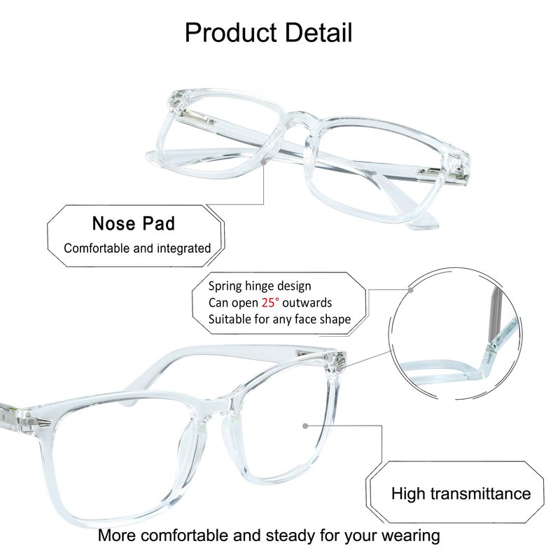 Product description Enjoy clear eyes and reduce headaches with blue light blocking glasses designed for reading, biking, and other outdoor activities. Product Details: Bifocal reading glasses HD clarity anti-glare lenses Lightweight, comfortable frame Gender neutral (men and women) Order Includes: Yein eyeglasses Soft cleaning cloth Glasses case Silicone ear hooks Small screwdriver Blue light blocking test tools Attention: When wearing glasses, please hold the temples with both hands When not in use with lens cloth, the lens up and placed in a special bag, beware of the lens and the frame is scratched by hard objects. Frames or lenses contaminated with dust, sweat, grease, cosmetics, etc. Please use a mild detergent warm water, then dry with a soft cloth. Prohibit prolonged exposure to water, soaked in water and placed in a fixed place by the sun exposure; prohibit the prolonged exposure to current, metal edge.
