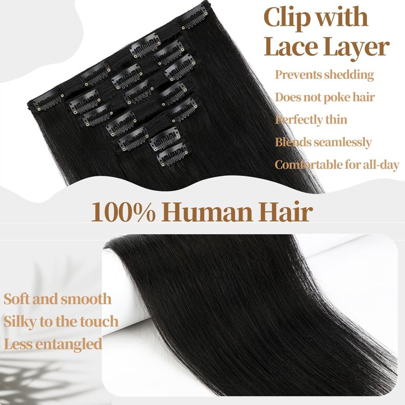 - Secret Clip-ins Hair: Each clip is sewn onto the lace. Sturdy and not easy to slip off. The lace design reduces the thinness of each weft, allowing the clips to be covered by natural hair and create a seamless blend