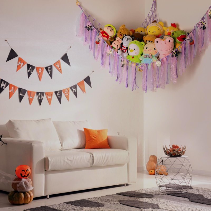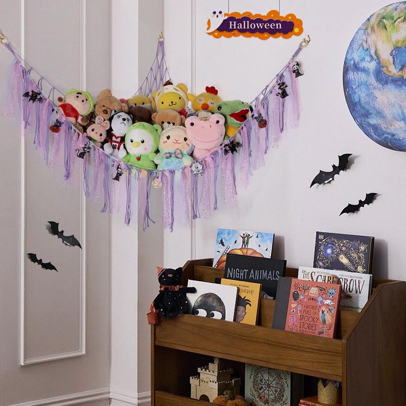 - Easy to Use: Halloween Toy Hammock with Battery-Powered Colored Lights, Easy to Install in a Corner, Perfect for Storing Stuffed Animals!
