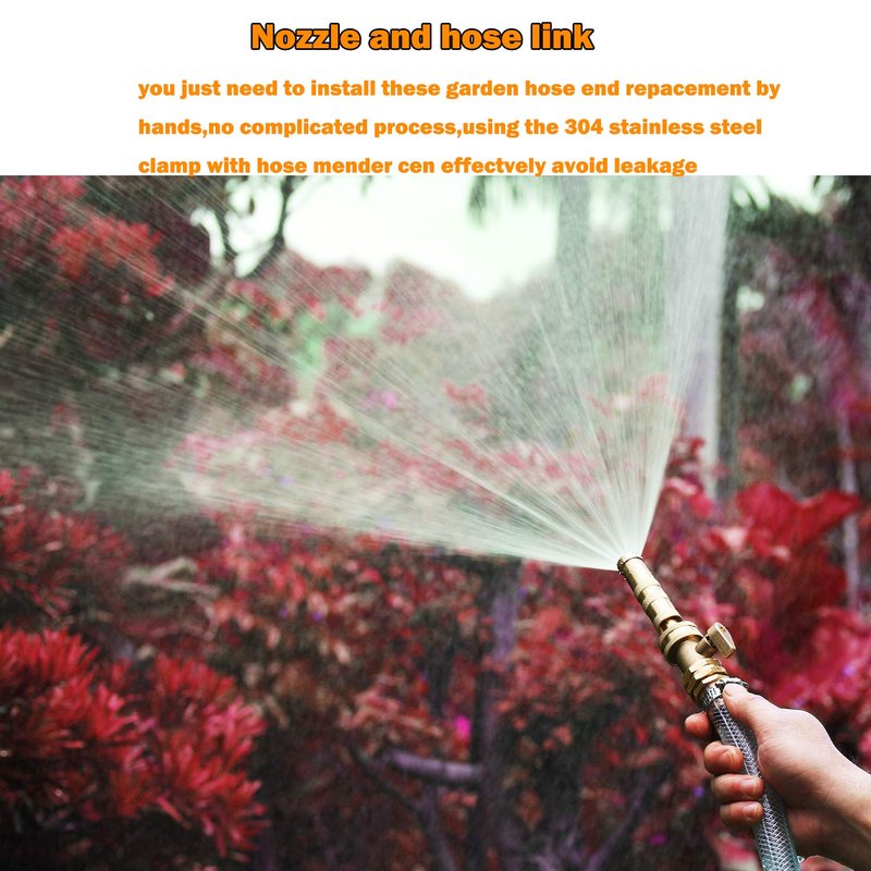 - Standard 5/8" US thread garden hose connection, and our size is 15.95mm(0.628 IN). The hose can be easily inserted and the stainless steel clamp is tightened without water leakage, work with your gaden hose, sprayers, nozzle, etc.