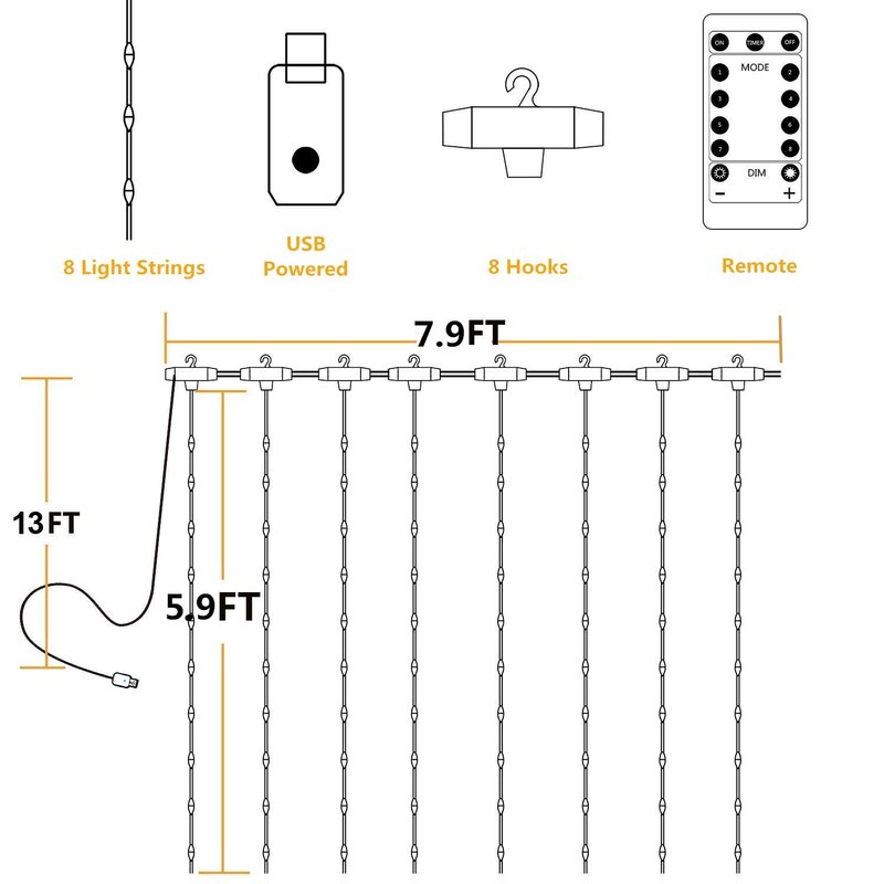 - 8 MODES WHITE CURTAIN LIGHTS --- Combination, in waves, sequential, slogs, chasing/flash, slow fade, twinkle/flash, and steady on. Best gift icicle lights for dorm. NOTE: ONLY STRING LIGHTS,NO INCLUDE CURTAIN.