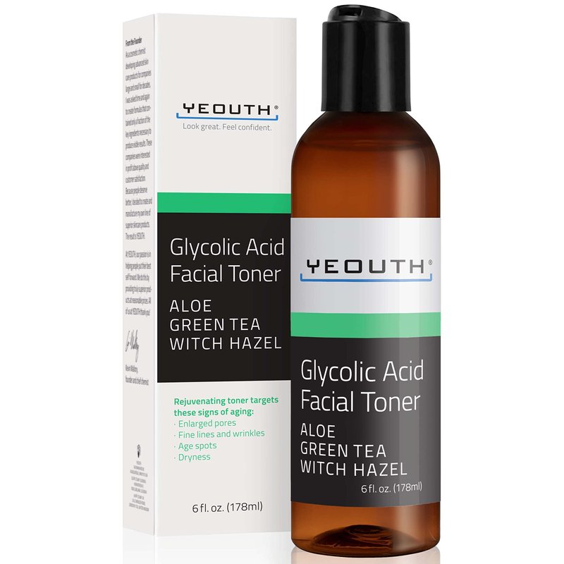 - YEOUTH Glycolic acid facial toner with Witch Hazel extracts. Made in the USA! Owned by a Cosmetic Chemist. Paraben-free. Dermatology Tested. All your skin needs from our fountain of YEOUTH! Add this face toner to your skin care routine today!