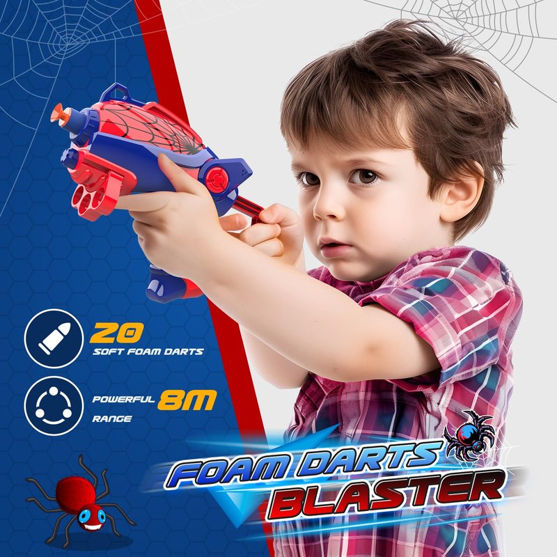 - Cool Spider Shooting Toys: With unique and outstanding design, the shooting game toy is more attractive and engaging to kids. This toy set includes 1 target shooting gallery, 1 foam dart toys, 20 soft foam darts and 3 shooting targets for endless shooting excitement. Rich shooting accessories provide enough support for playing. It is fun outdoor toys for ages 4-8, adding fun to your kids, family and friends.