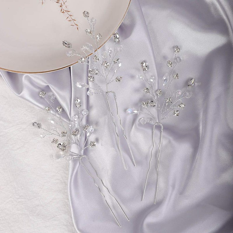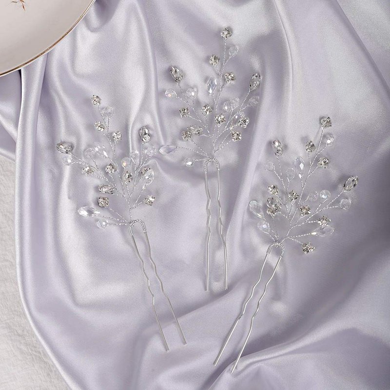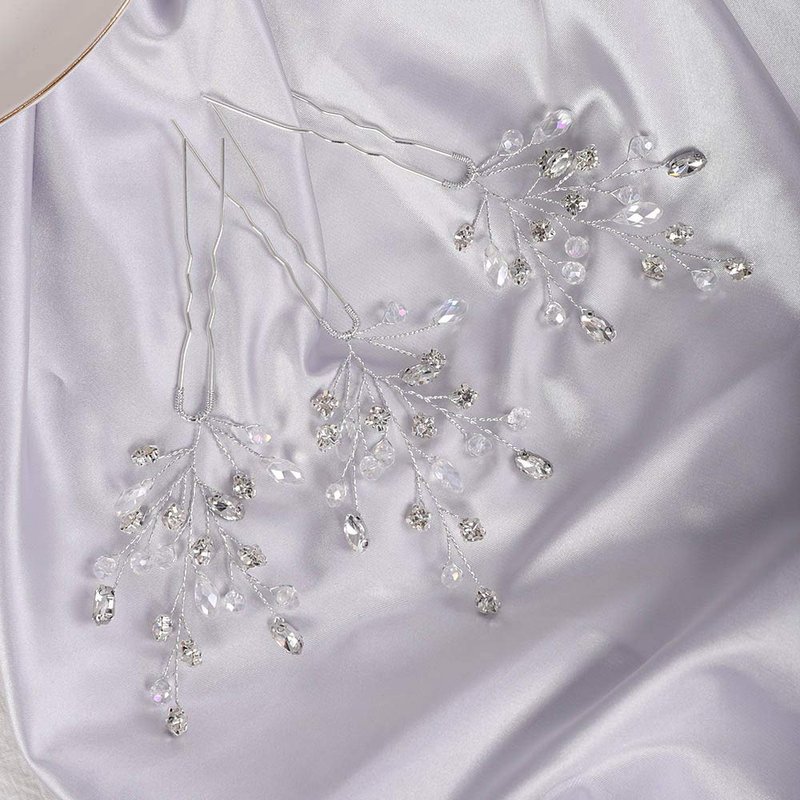 YERTTER 3 Pcs Wedding Hair Pins Decorative Rhinestones Crystal Vine Bridal Bun Clip Accessories for Brides and Bridesmaids (Silver)