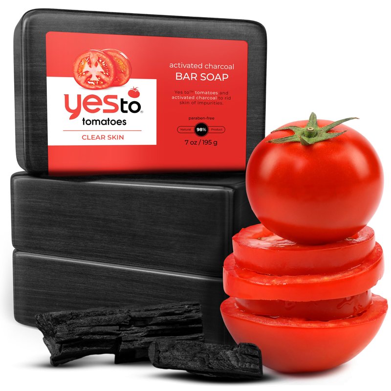 Discover the purifying power of Yes To Tomatoes Activated Charcoal Bar Soap. This detoxifying face and body soap is specially formulated for men, women, and teens seeking clear, balanced skin. Infused with detoxifying charcoal, it deeply cleanses pores, effectively removing impurities and excess oil without drying out your skin. Rich in antioxidants from tomato extracts, this bar soap helps protect your skin from environmental damage while preventing breakouts for a clearer complexion. Dermatologist-tested, our bar soap is gentle yet effective, making it ideal for daily use. It's formulated with over 95% natural ingredients and is free of parabens, ensuring a nourishing and ethical skincare choice. Whether you're targeting oily patches, clogged pores, or simply seeking a refreshed glow, our charcoal bar soap offers a luxurious cleansing experience that leaves your skin feeling smooth, balanced, and detoxified. Indulge in the goodness of nature with Yes To Tomatoes Activated Charcoal Bar Soap, your go-to solution for revitalized and radiant skin. Perfect for all skin types, including combination skin, it's the essential addition to your skincare routine for a clear and healthy complexion.