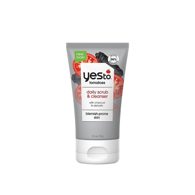 Yes To Tomatoes Clear Skin Detoxifying Charcoal Deep Cleansing Scrub 3.5 Oz, For All Skin Types To Deep Clean & Purify Skin, Vegan With 96% Natural Ingredients