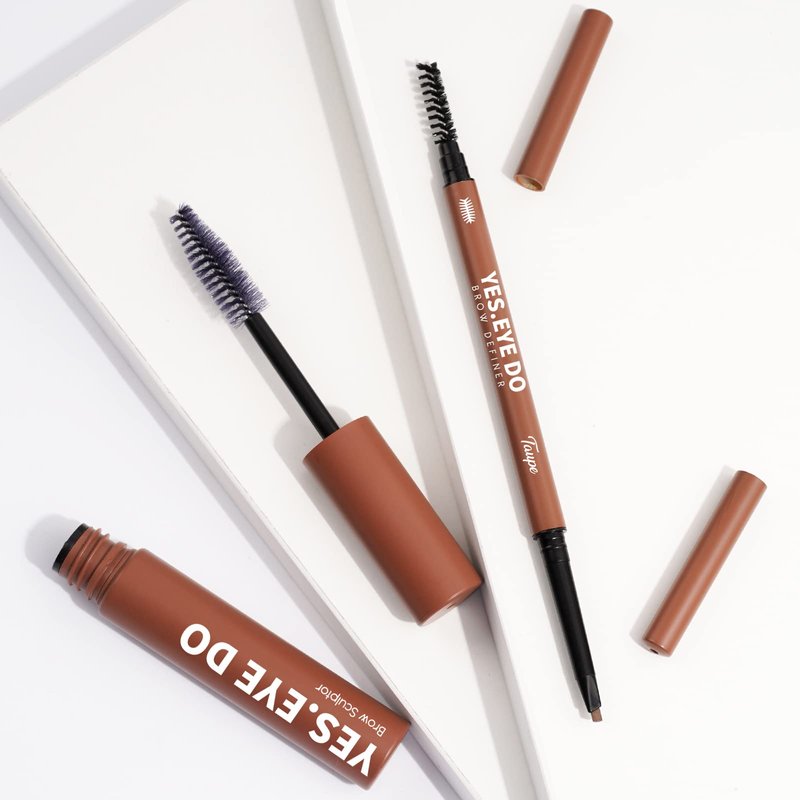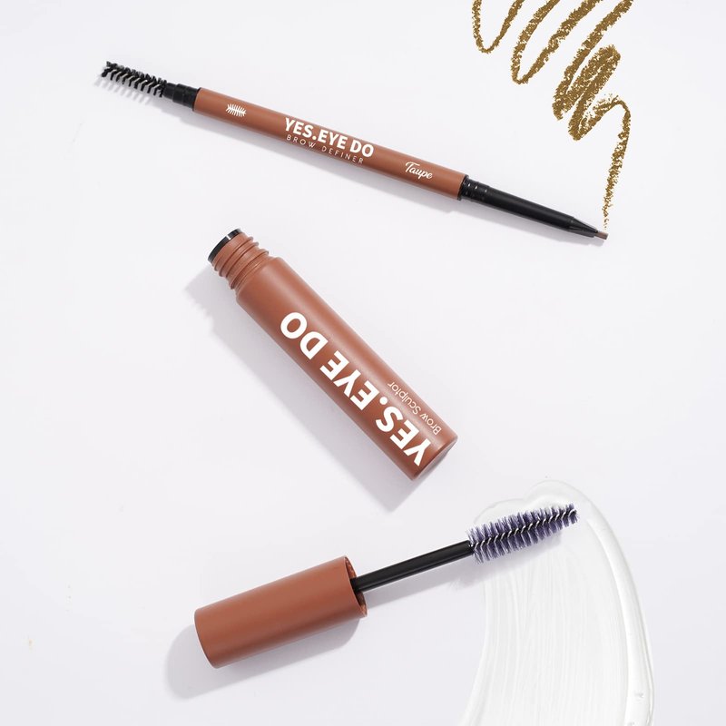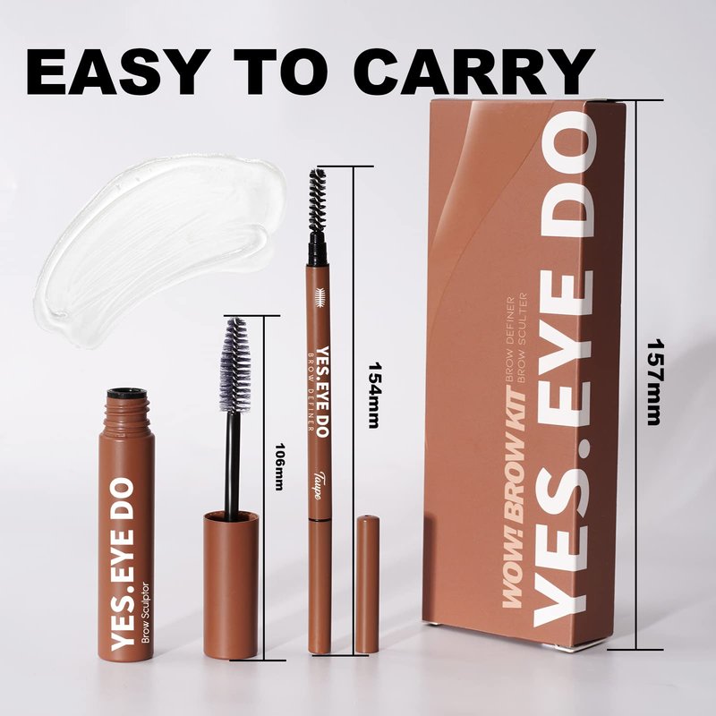 YES.EYE DO Eyebrow Makeup Kit for Beginners, Clear Eyebrow Setting gel Stronghold and Ultra Precise Eyebrow Pen with Spoolie Brush for Brows Defining Filling Shaping, Waterproof, Longlasting, Taupe