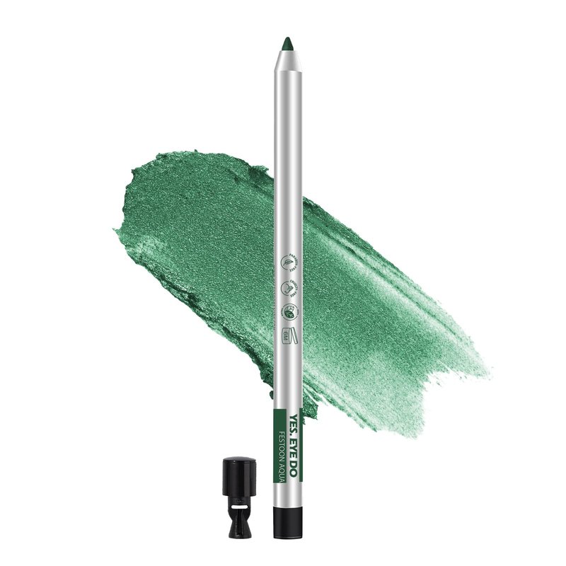 YES.EYE DO Eyeliner Pencil Green, Retrractable Gel Eyeliner Pen with Sharpener, Glitter Creamy Eye Liner for Winged Eye Look, Waterproof, Highly Pigmented, Festoon Aqua(Green)