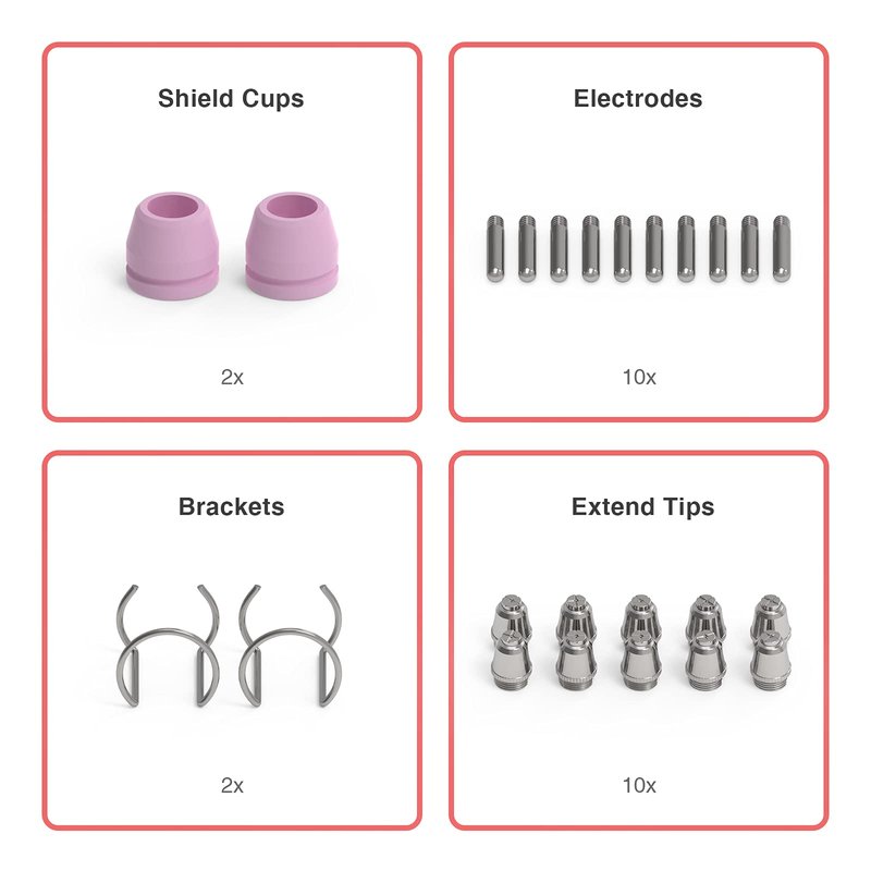 - PACKAGE INCLUDED▶10 x -Extend Tip+10 x Electrodes+2 x protective cases+2 x isolation blocks
